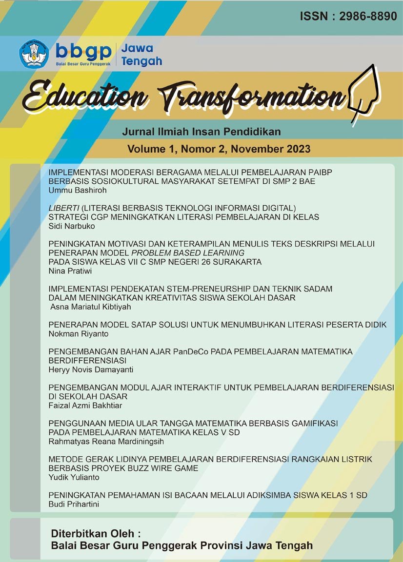 Vol 1 No 1 (2023)Education Transformation: Jurnal Ilmiah Insan Pendidikan Volume 1, Nomor 1, Tahun 2023